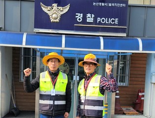 역량활용형 어르신 일자리 확대치안지킴이(왼)금영식, 오)정양주 치안지킴이 어르신)논산시(시장 백성현)가 어르신들의 활발한 사회참여와 안정적인 노후 활동 기반 마련을 위해 다양한 노...