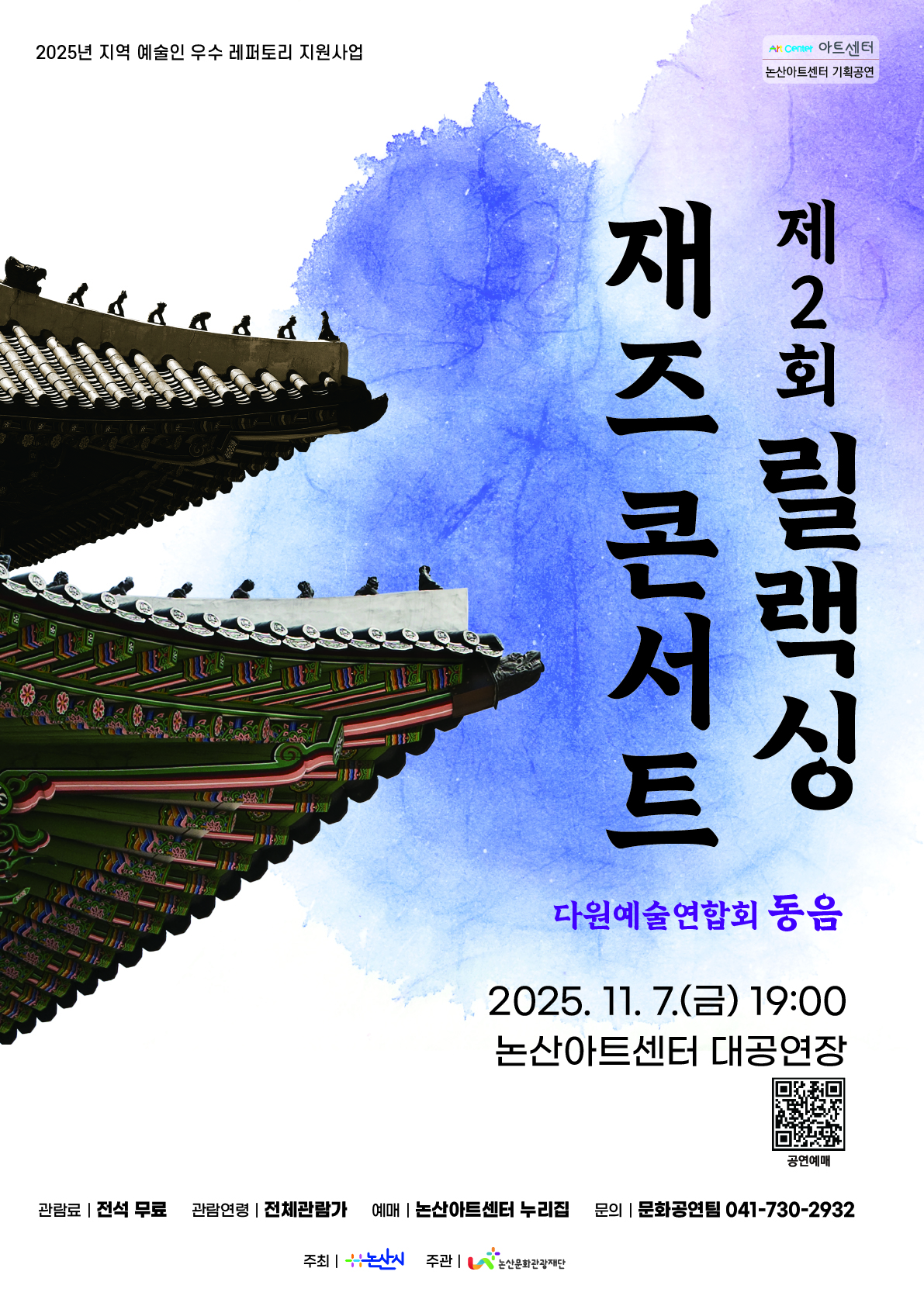 공연은 전석 무료이며, 예매는 논산아트센터 누리집(https://www.nonsan.go.kr/arthall)에서 가능하다.